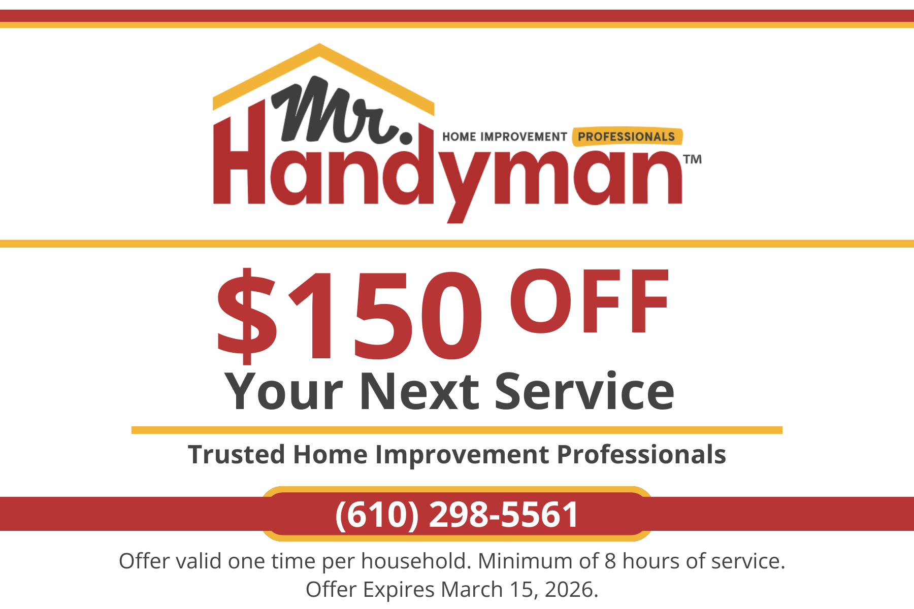 Experience the Mr. Handyman difference and save on home maintenance or repair
